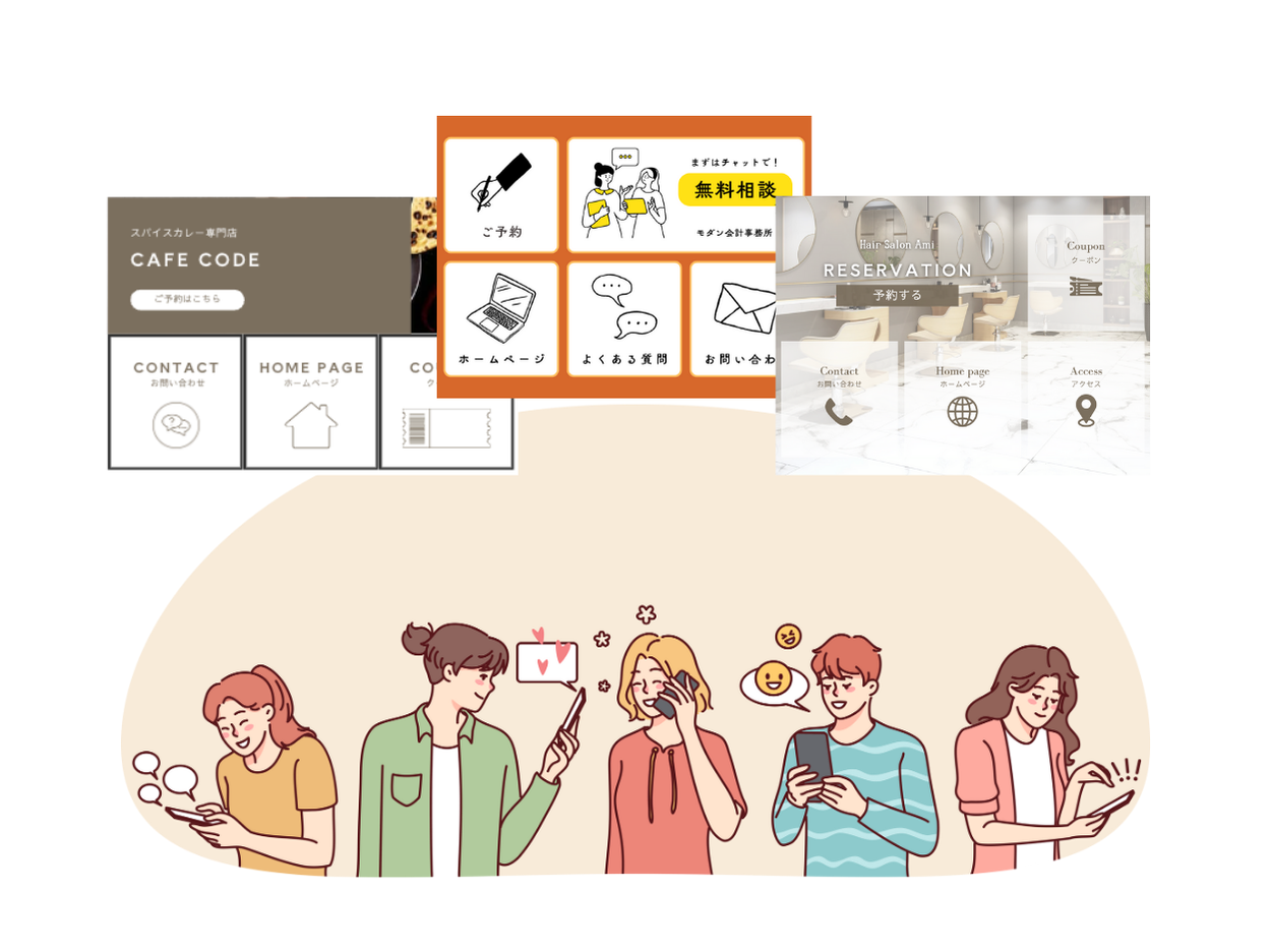 お客様の塾に合わせたオリジナルデザインのリッチメニューを作成!内容・項目も自由に設定できます。リピート獲得のためのポイントカード機能も実装可能です!