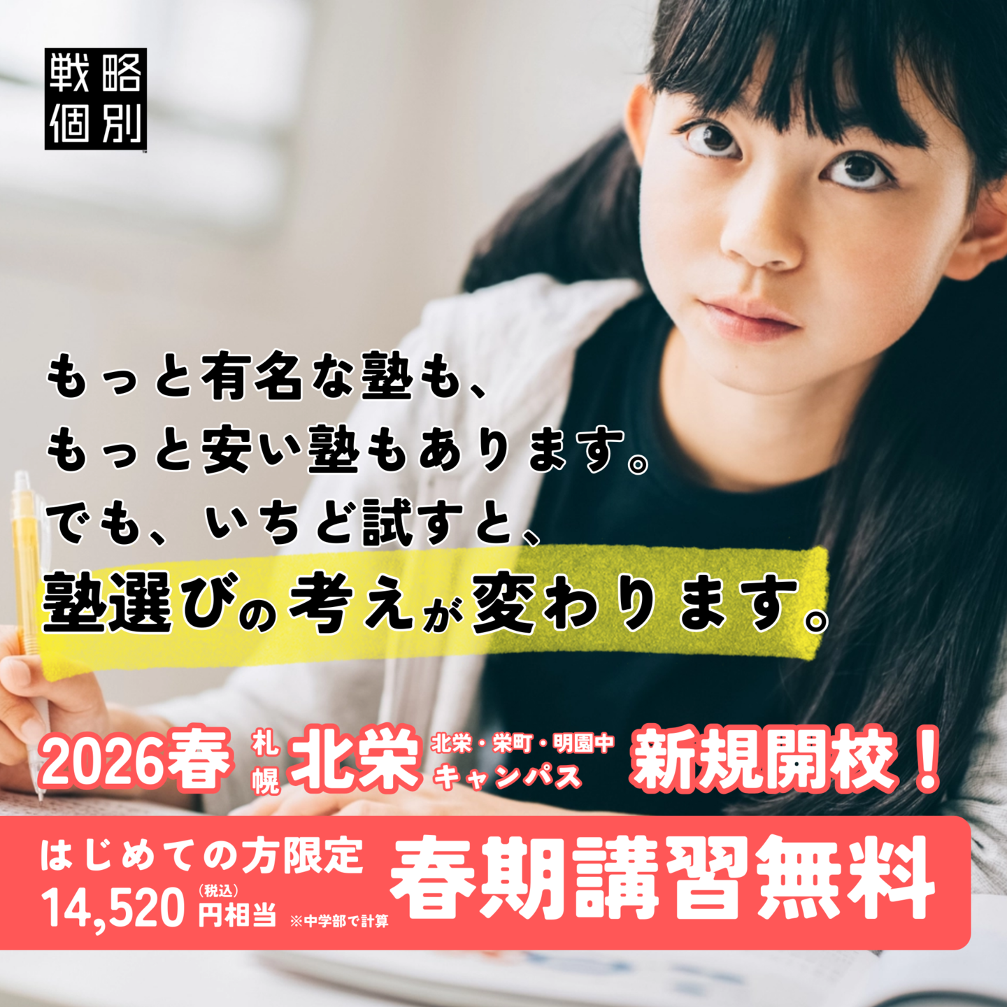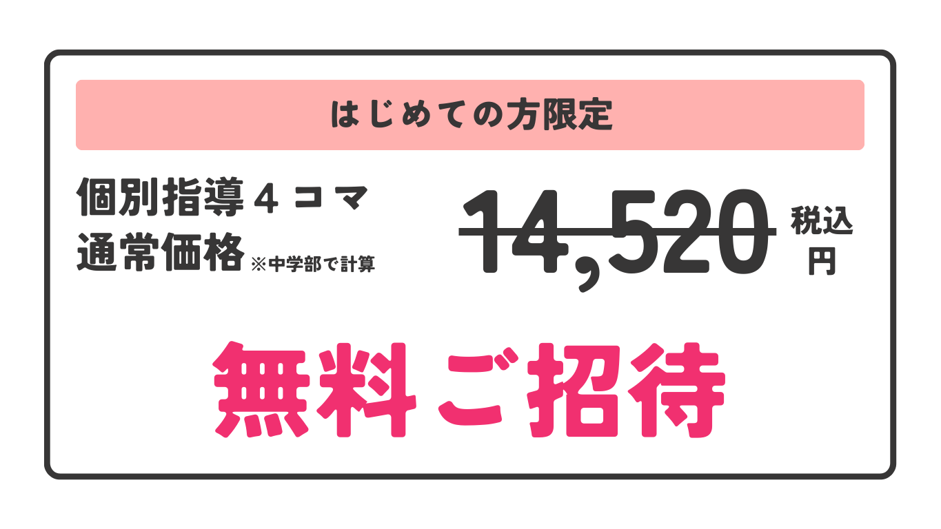 | 中学部 | 1〜4コマ追加の場合:3,300円(税込 3,630円) |