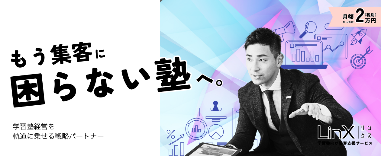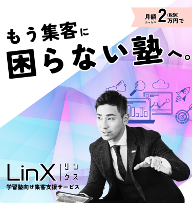 WEBサイトの制作は、コンセプトやストロングポイントを明確にする作業を伴うため、自社のサービスについて深堀りをするよいきっかけになります。LinXは、学習塾の教室経営の経験のあるスタッフが、あなたの参謀となってよりよい経営・販促活動をサポートします。