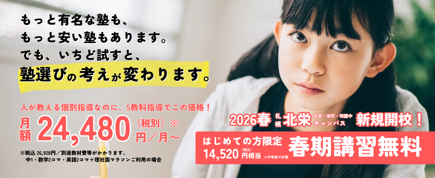 | 中学部 | 1〜4コマ追加の場合:3,300円(税込 3,630円) |